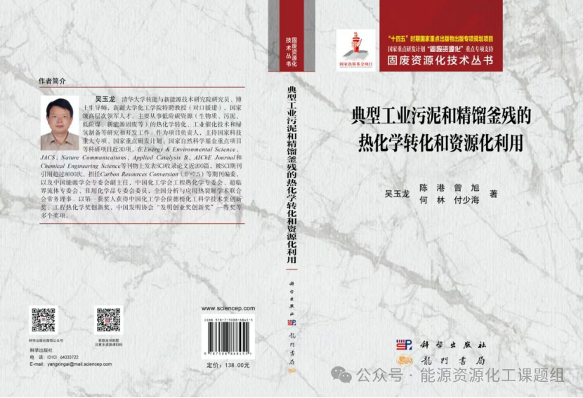 与此同时,由吴玉龙教授联合陈港、曾旭、何林、付少海等学者共同撰写的学术专著《典型工业污泥和精馏釜残的热化学转化和资源化利用》正式面世。该书入选“十四五” 时期国家重点出版物出版专项规划项目,获国家重点研发计划 “固废资源化” 重点专项支持,由科学出版社与龙门书局联合出版。